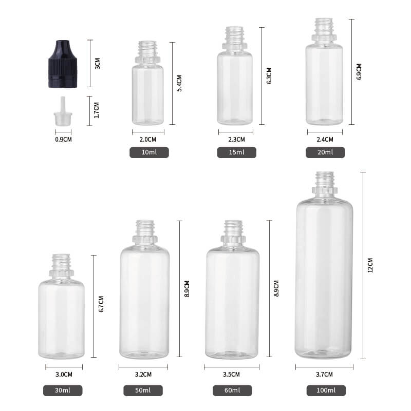 10ml 15ml 20ml 30ml 50ml 60ml 100ml Eliquid PET Dropper Bottles Storage for Vapers