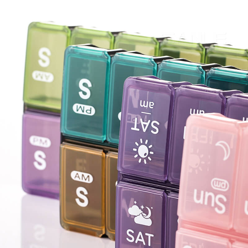 Pill Box Organizer Weekly Portable Travel Pill Holder Case 7 Day for Supplements Vitamin Weekly Organizer